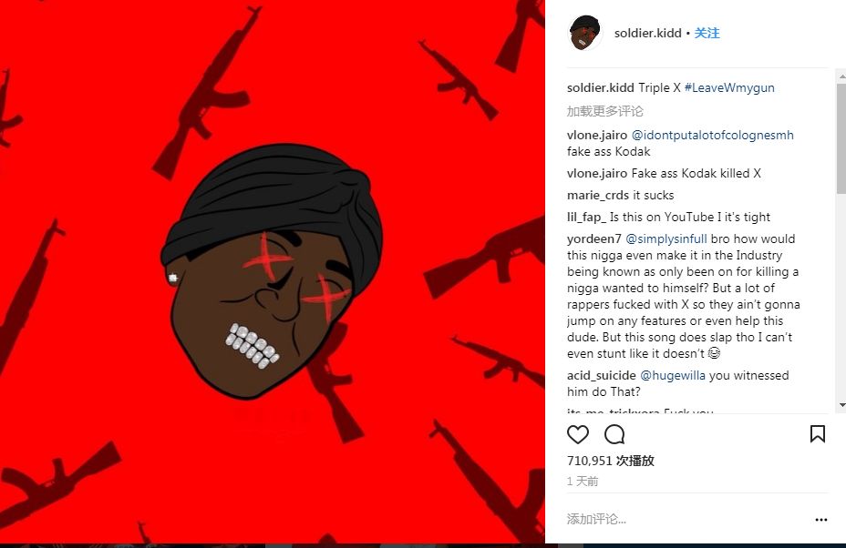 直播洗白当然还不够。Soldier Kidd还录制了一个视频,解释到他们不是凶手,上升到他们甚至根本没听说过XXXTentacion。但以评论区目前的形势来看,几乎没有人相信Soldier Kidd,反倒有点儿越描越黑。