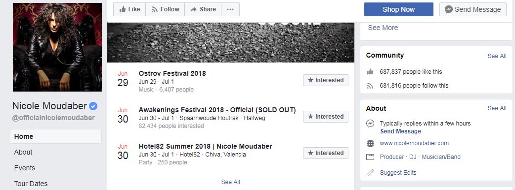 例如在Facebook上的69万粉丝,Instagram上的25万粉丝,Soundcloud上的15万粉丝,以及常常被众多例如RA等Underground Electronic Music媒体报道的曝光率等等。几乎所有数据均可证明Nicole Moudaber在跳舞音乐场景下不靠吃青春饭,照样成功。