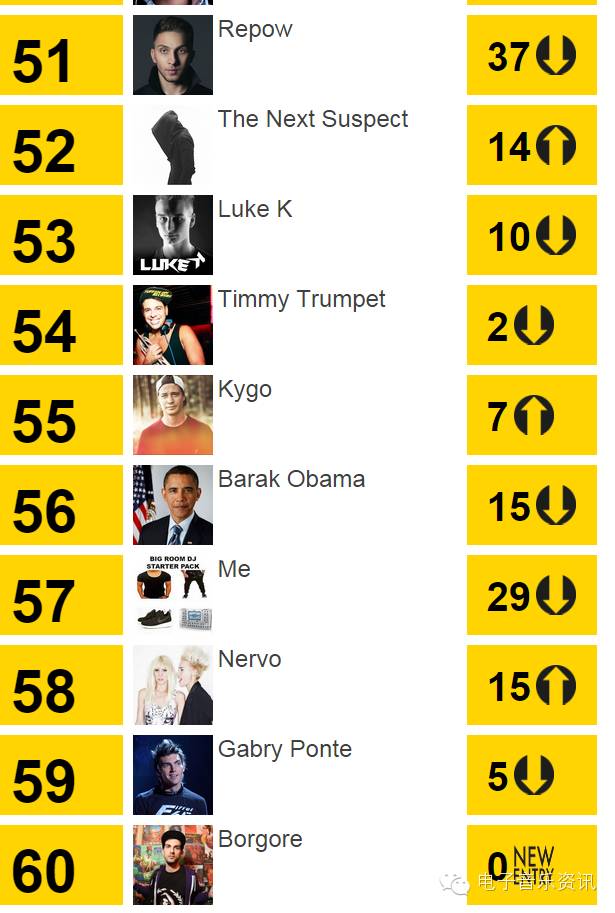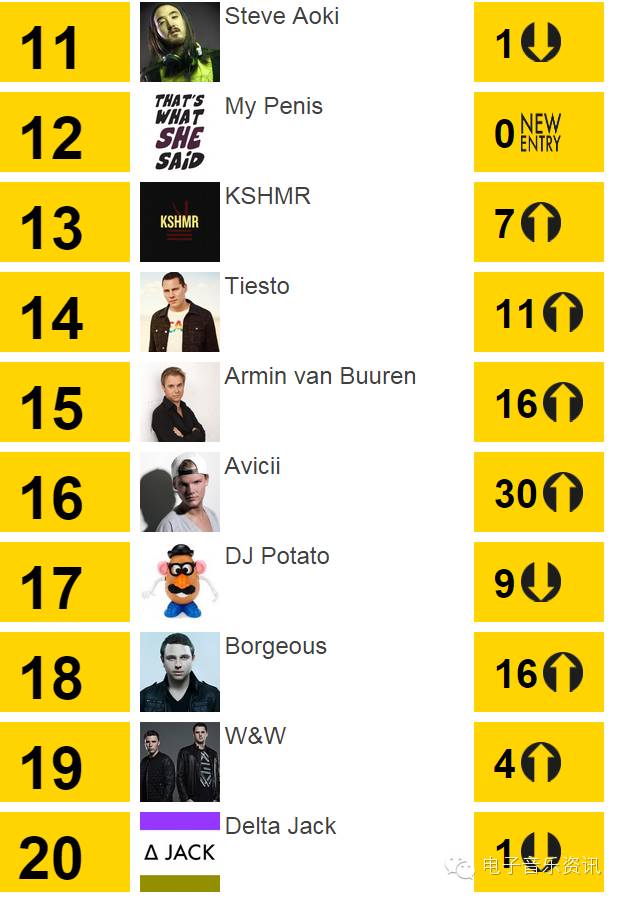 这并不是一个玩笑,这是一个真实存在的排行榜。介于本公众号已经多次提到和吐槽过百大DJ排行榜的水分,咱们再来看看这个被大量鬼佬电音爱好者支持的百差DJ排行榜。