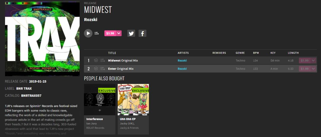 TJR在几天前以他的“小号”或者说Side Project“ROZSKI”的名义,发布了ROZSKI的第一张Acid EP。据说ROZSKI会是TJR的一个Acid项目或者Techno项目,首张EP名为《Midwest EP》,他说是为了致敬90年代对他影响极深的Acid而创。