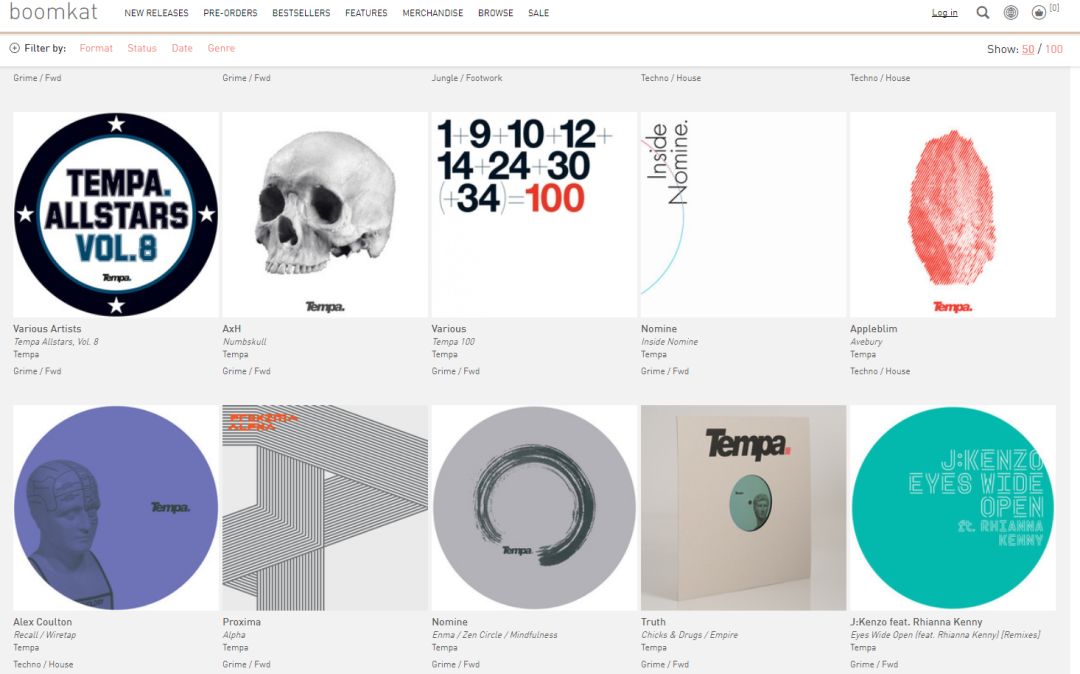 Tempa Recordings的数字唱片通常在iTunes/Spotify/Beatport/Juno Download/Amazon Music/Google Play进行官方渠道线上发布。而实体唱片,则在Bleep/Boomkat/Redeye/Juno以及线下官方实体店,对其厂牌作品进行售卖。