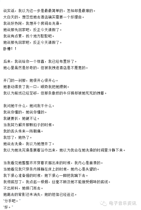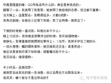 兑个人朋友圈的现,答应大家赞要是到了70就写,而一夜到了140。小编再次要写一篇无关于电子音乐的文章插播了。事情是这样的,原本小编在无聊翻社交网络的时候看到一名网友发了个渣男的知乎,专业通过一些根本跟答案无关的提问去散播自己的渣男历史,小编本着想学学怎么当渣男的思路去看了一下那些回答,发现那些事儿,以我这性格是怎么样也做不到。于是小编再次放弃了当渣男的念头,准备好继续万年单。