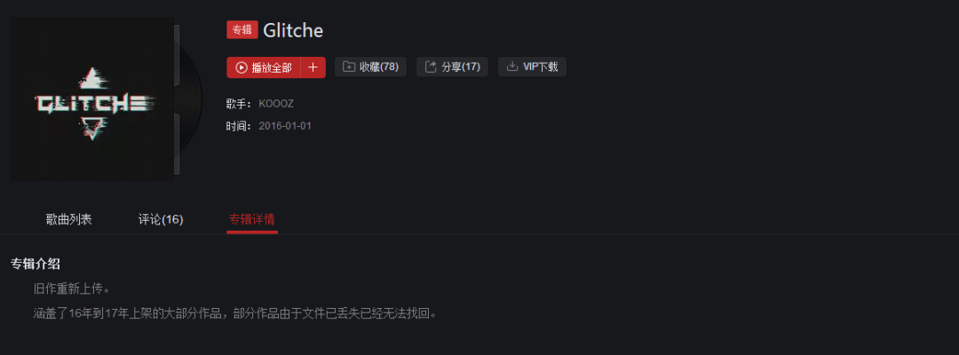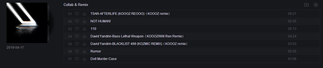 KOOOZ was autistic and shy, he deleted over 40 his songs due to personal reasons, until April,2019,KOOOZ released 30 his old tracks through 2 albums called 《GLITCHE》/《Collab & Remix》. He got back officially, and signed Electronic Music Information the same month.