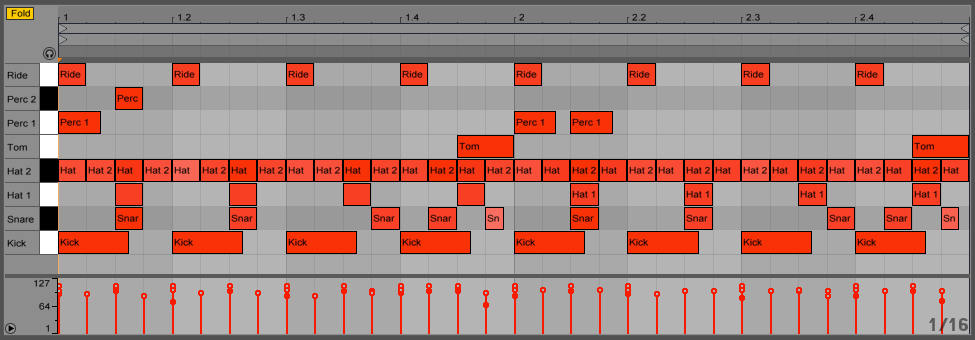 特性三:而且以稳定的节奏型被击打。所有Four-On-The-Floor的音乐都有一个特征,它们的鼓组击打模式必须是稳定的,比如说一拍一Kick,一拍两Ride Cymbal的现代Techno、第一拍Kick第二拍Clap的House或Trance等……一切都是存在规律的、规整的。