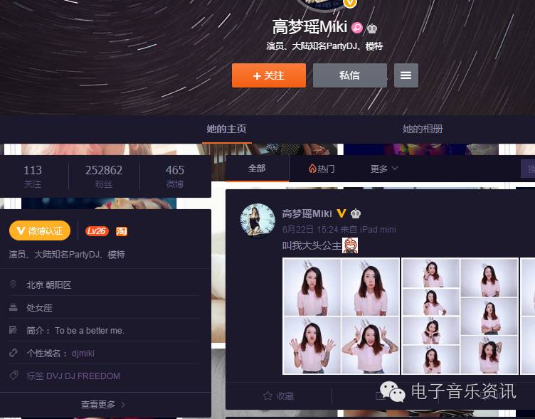 我们任何一位电音爱好者都不会因为粉丝数而决定单曲好坏,只可能作为一个人气数据。有人已经全球巡演了,微博上只有几千个粉丝。做好该做的音乐,树立正确的三观。