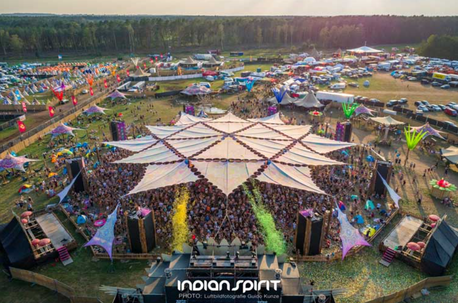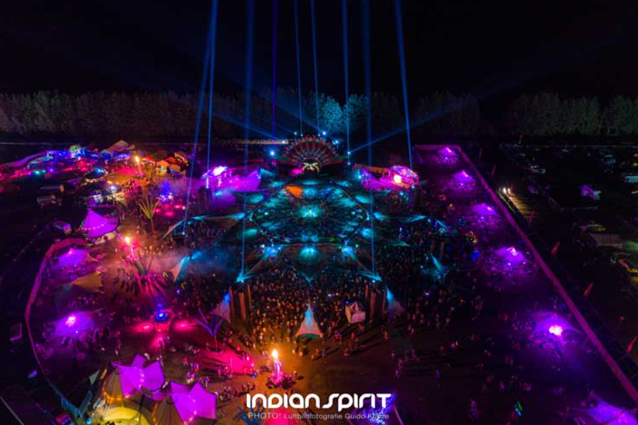 回到本文的主角(其实是配角),Indian Spirit Festival是德国甚至欧洲的最具“印度精神”的电音节,自1999年首次举办以来,每年凭借多彩的舞台、顶尖的技术、出色的灯光表演以及宜人的环境逐步获得了国际声誉,每年吸引了世界各地近一万名爱好者,最近一次(2019年)即使遇上了不佳的天气也有14000名Raver锐舞选手参加。