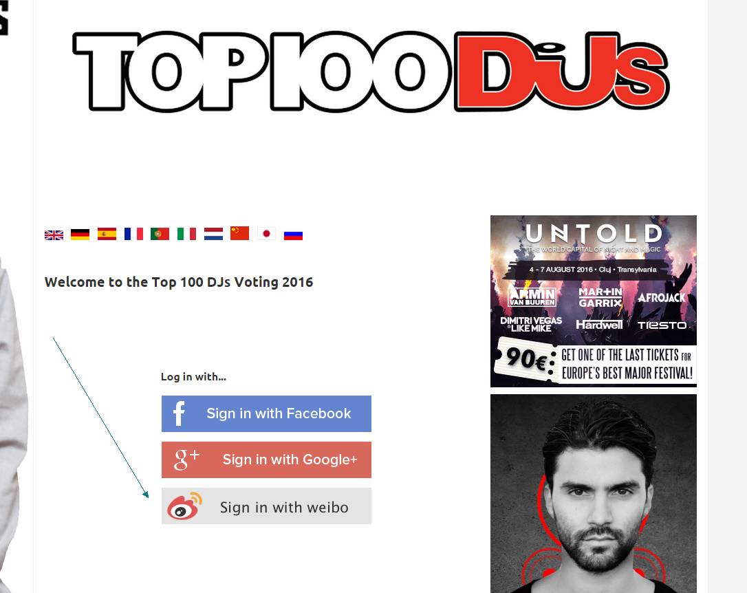 DJMag的官网一直都是无墙的,但由于Facebook和Google+的登录限制,造成以前墙内用户无法投票,要投票就必须到墙外。目前由于微博接口BUG修复,墙内也可以直接投票。显然开放微博投票是事实(百大DJ要出大事了。)。
