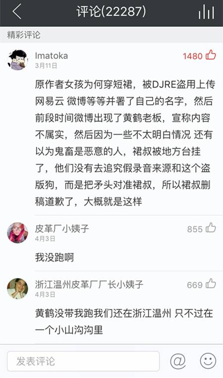 可以看到至截图为止,已经有22287条评论。但一眼望去扫了几百条,仅仅只有一条是曝光他的盗歌行为: