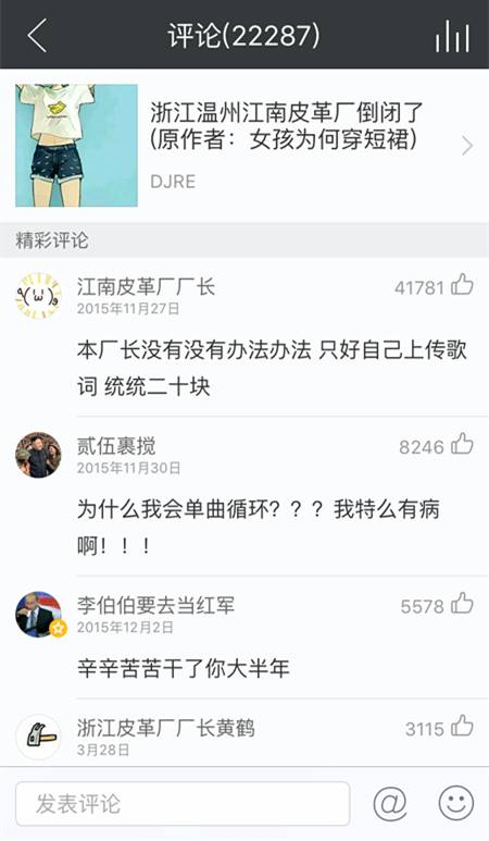 我认为你一定听过这首歌,毕竟当时刷爆了整个朋友圈。还记得那句歌词“浙江温州江南皮革厂倒闭啦”吗?没错,这首歌就是一首盗歌蛤蟆挂在自己名下的别人的作品。在网易云里是这样的: