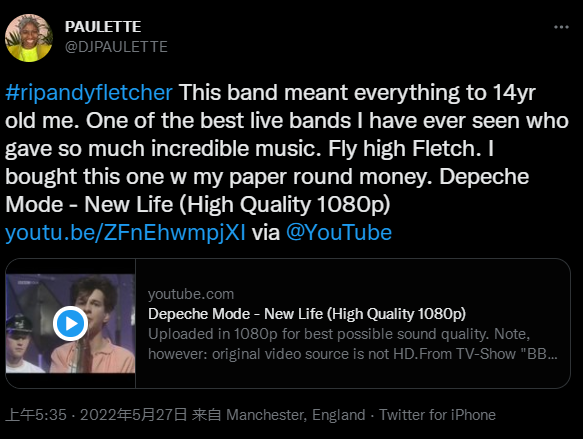 5月26日,又是一颗星辰陨落的日子(还是群星陨落,当天还有其他知名Rapper、演员去世)——英国老牌音乐艺人Andy Fletcher离世,享年60岁。Andy Fletcher是英国电子/摇滚音乐组合Depeche Mode的最早的两位创始成员之一,而Depeche Mode在国内有着更广为人知的译名:赶时髦乐队。
