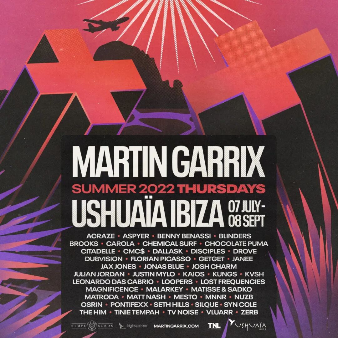 7月7日周四,Martin Garrix将以“Opening Party”开启Hï Ibiza的驻场之旅,一直持续至9月8日,每周四一场(所以也是Weekly Events及每周制的驻场)、合计十场,并分别邀请Benny Benassi、Lost Frequencies、ACRAZE等国际知名艺人联合呈现,完整的艺人名单如下。