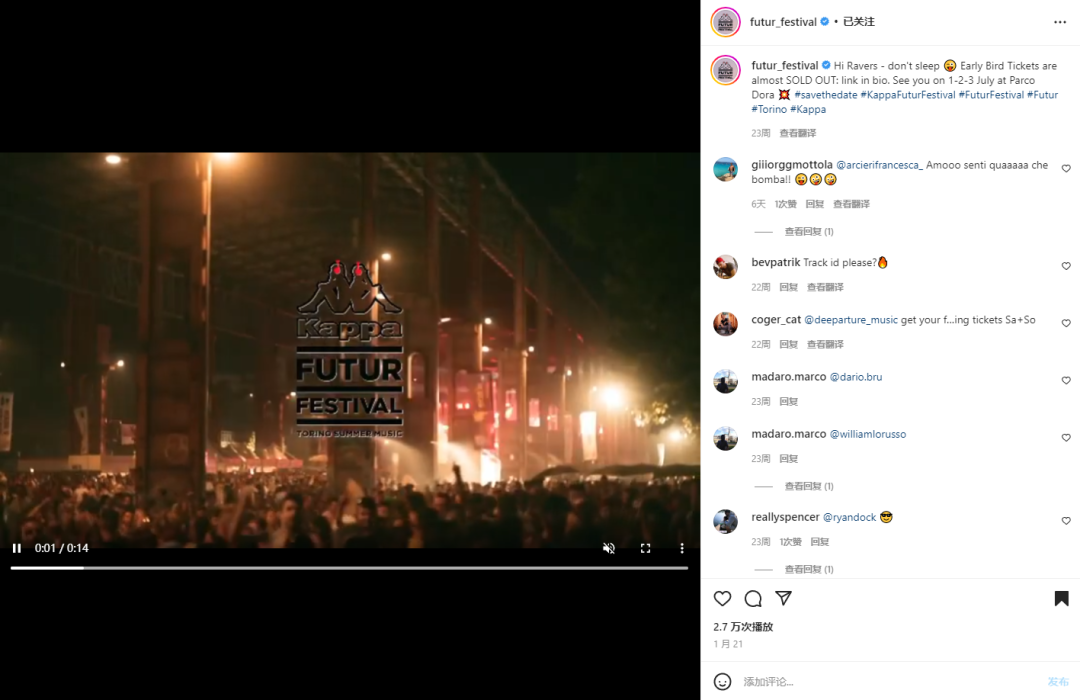 图片来自Kappa FuturFestival Instagram截图 图片版权属于原主