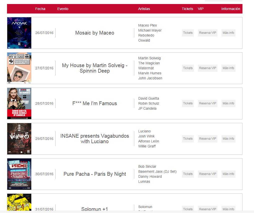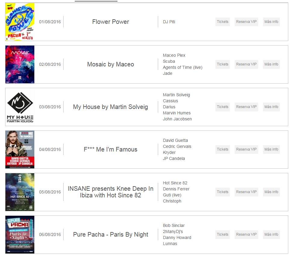 Pacha,David Guetta驻场的夜店,你没有看错,驻场。一周一次,不过也不是只有David Guetta,这里的活动信息琳琅满目: