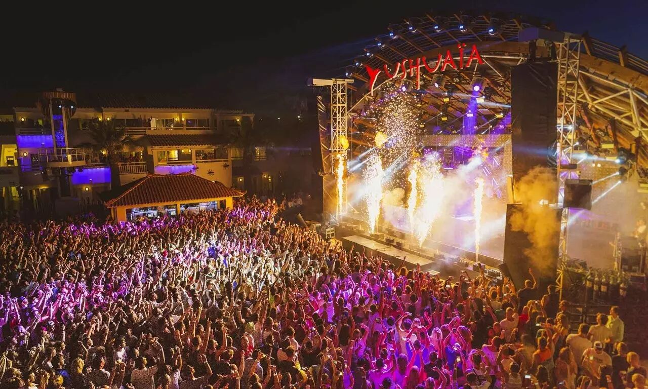 Ushuaia,名义上是带泳池的酒店,在中间的地方却是用来办派对的。这不是一般的派对,它的一切设备都是电音节的档次。你认为室内音乐节跟ibiza的夜店差不多?这想法没错。但你知道这里连小型室外电音节都可以媲美吗: