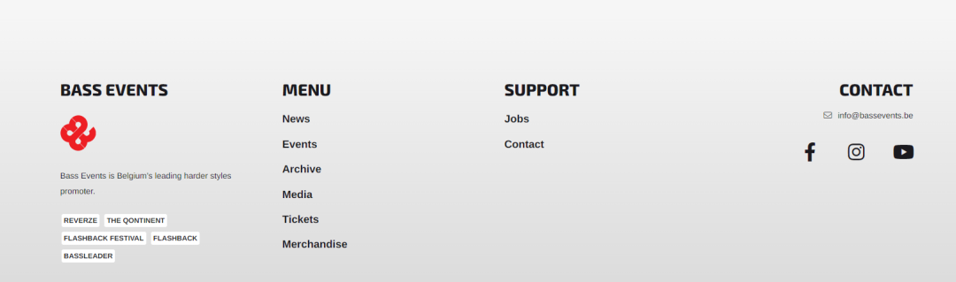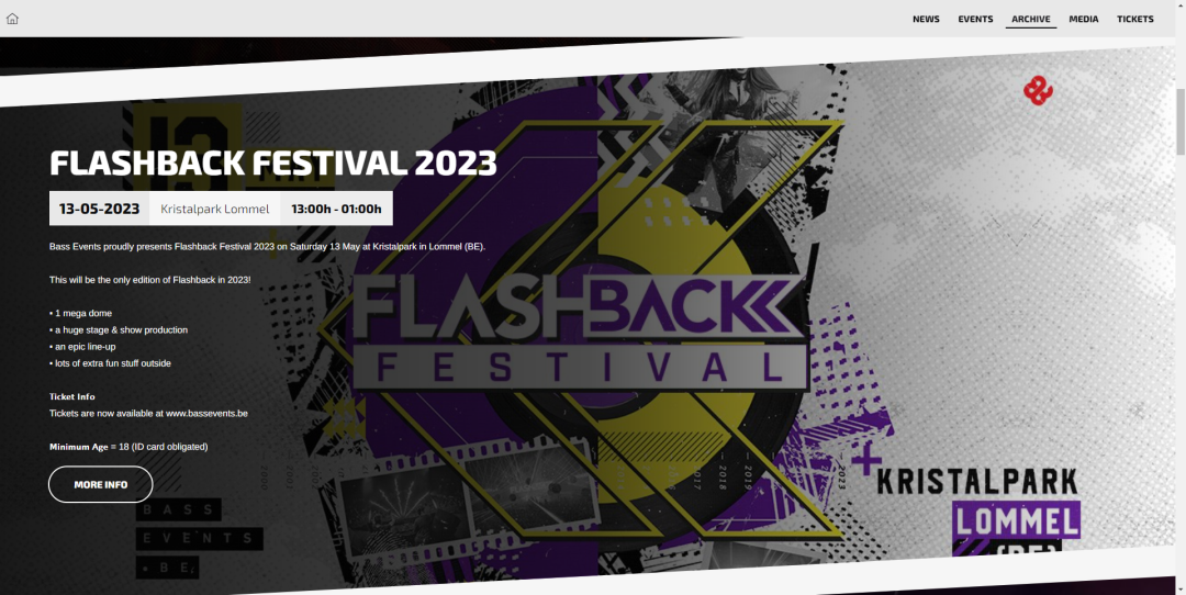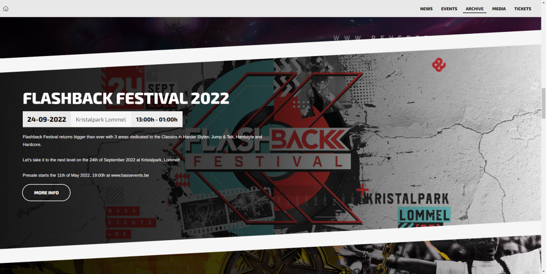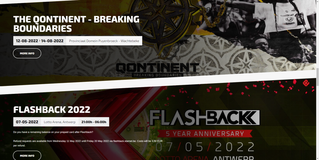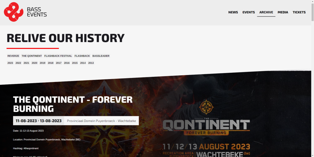、The Qontinent(与Q-Dance共享的IP)、Future Shock、Bass Events NYE、Bass Events Outdoor、Masters Of Hardcore Belgian Edition、各种Harder Styles艺人专场、Flashback Festival等超大型活动。
