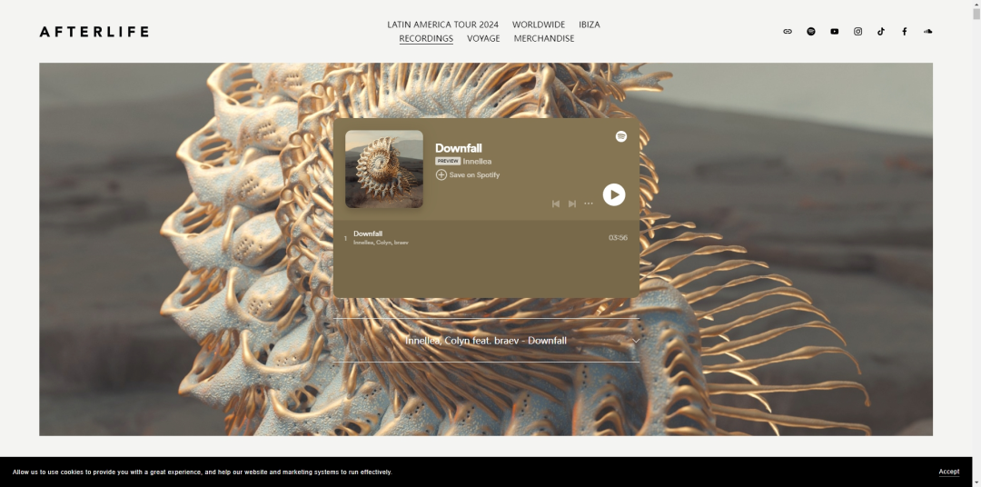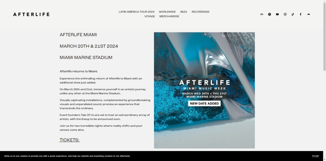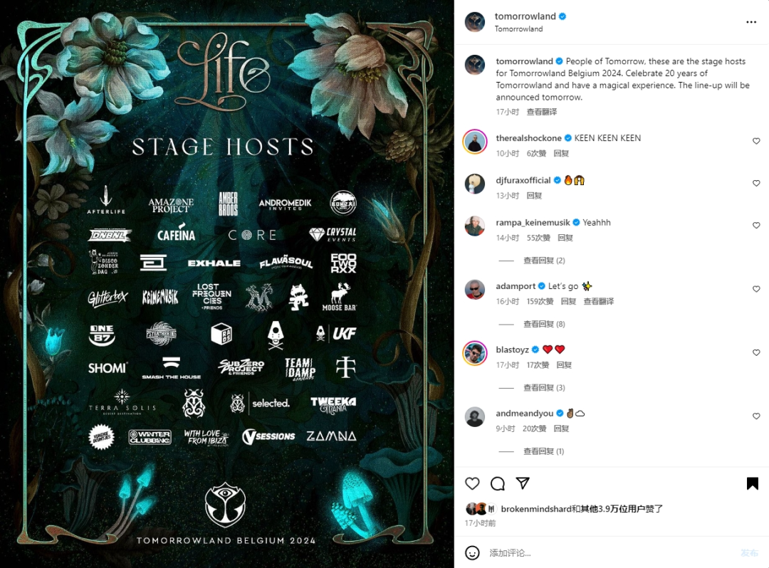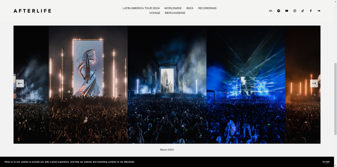图片来自Afterlife Records / Afterlife Recordings 图片版权属于原主大部分人对Afterlife的了解,起码可以说,在大中华地区乃至全亚洲,过半电音爱好者、Ravers,甚至DJ和电音制作人对Afterlife的了解,都只有这四分之一,那就是Afterlife四大板块当中的唱片厂牌版块,Afterlife Records / Afterlife Recordings。图片来自Afterlife Records / Afterlife Recordings 图片版权属于原主重要的事情说两遍(故意的,“自发”理论):Afterlife的唱片厂牌业务,有些时候会叫作Afterlife Records,有些时候会叫作Afterlife Recordings,也就是说这两个后缀都没有任何错误,千万不要去抬杠,钻文字的牛角尖。图片来自Afterlife Records / Afterlife Recordings 图片版权属于原主咱们不是说严谨不好,严谨好,有些牛角尖是不得不钻,但这两个说法都是被Afterlife官方采用的。譬如在全球最大的舞曲商城Beatport、BP数据站Beatstats里,Afterlife的唱片厂牌业务就叫Afterlife Records。目前,它依然是Beatport的Melodic Techno & Melodic House流派第一名、“全年全月”全球百大厂牌第一名!图片来自Afterlife Records / Afterlife Recordings 图片版权属于原主但,在Afterlife唱片厂牌业务的Bandcamp账户中,叫自己Afterlife Recordings。同理地,在Afterlife官网用的也是Afterlife Recordings。当我们探讨Afterlife(来世、后世)的音乐发布时,可用Afterlife Records / Afterlife Recordings界定。图片来自Afterlife Records / Afterlife Recordings 图片版权属于原主图片来自Afterlife Events 图片版权属于原主在Afterlife的官网上,他们习惯、喜欢用地理的方式区分Afterlife Events业务的三大区域,分别Afterlife Latin America Events、Afterlife Ibiza Events、Afterlife Worldwide Events,一为拉丁美洲活动、二为伊比萨岛地区活动、三为全球。图片来自Afterlife Events 图片版权属于原主举个“栗子”:Afterlife Miami,或者写作Afterlife Miami Events、Afterlife Events Miami,不光只是在Miami的多家俱乐部出现过,也会与Miami Music Week等大型音乐周、音乐节进行合作,2024年的Afterlife Events迈阿密站已经官宣。图片来自Afterlife Events 图片版权属于原主昨日,Tomorrowland官宣了自己的“分舞台承办单位”(Stage Takeover),被放置第一位(A-Z)的便是Afterlife Events巡演的比利时站。图片来自Tomorrowland & Afterlife Events 图片版权属于原主很明显,除却第一项Afterlife Records / Afterlife Recordings给Afterlife定下的唱片厂牌身份,Afterlife还活跃着扮演着活动举办方,而正如本系列的上文提到的,Afterlife会在自己举办的活动(Afterlife Events)当中带来超乎顶级的“声光电”,包括但不限于最出色的VJ和3D动画师共同公演、出品的Visuals。
