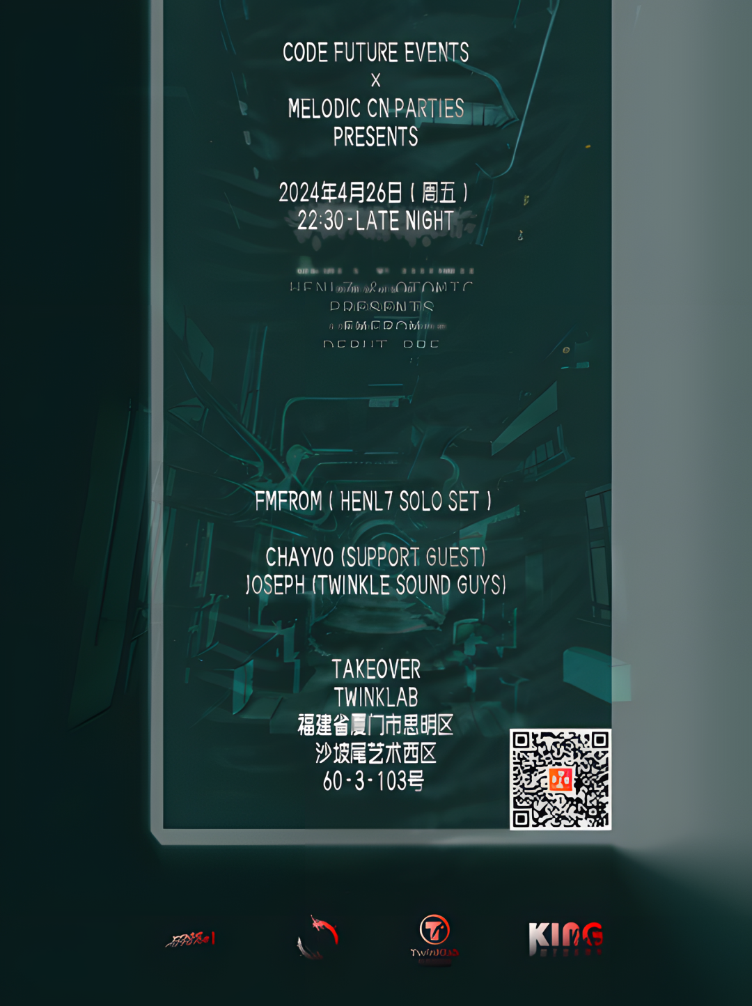 在Code Future Events和Melodic CN旗下Melodic CN Parties联合举办(共同举办)的《FMFROM项目Debut-预热派对》当中,HENL7借用FMFROM的名字(名义),定格于此刻“永远”地做回了真正的自己,他一直