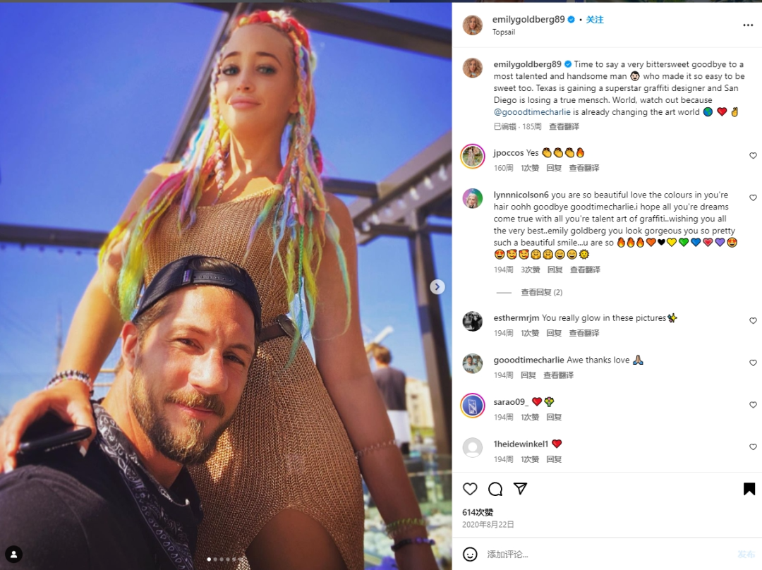 事实上,在与Avicii分手之后,E*ily G*ldberg已经更换了多名交往对象。但E*ily G*ldberg似乎对Avicii仍表现得“念念不舍”。在当时Avicii Lishi时,E*ily G*ldberg也是最为活跃的一个“前任女友”,多次表示对Avicii的Ai Dao。
