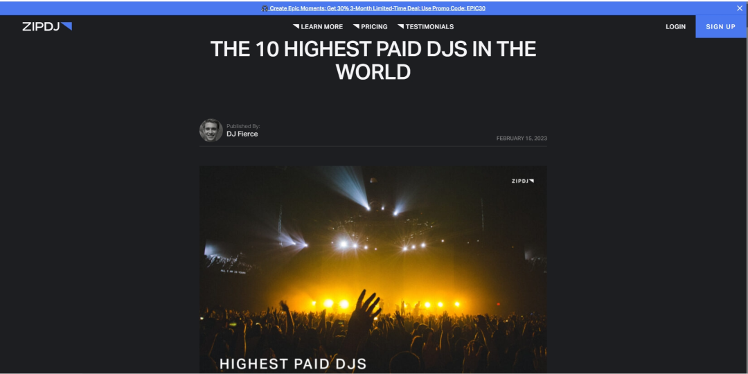 ZIPDJ是一个在北美洲乃至全世界受欢迎的在线订阅的数字音乐库,从2009年开始赞助Pioneer DJ总部举办的所有DJ演出,直到现在。而就在去年,ZIPDJ报道了The World's Highest-Paid DJs 2023,以Forbes数据为理据,由ZIPDJ品牌的编者之一DJ Fierce撰文。