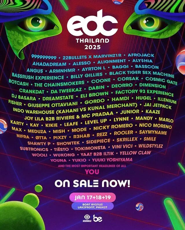 在EDC Thailand(EDC泰国站/泰国站EDC,简称“泰E”)第二波售票开始时,《电子音乐资讯》及《David YanDrin》便提醒了各位Raver:EDC Thailand 2025的阵容非常豪华,如果有出行计划,建议不要拖延,如若拖延,后续买票也许贵个500元至1000元,或更多。