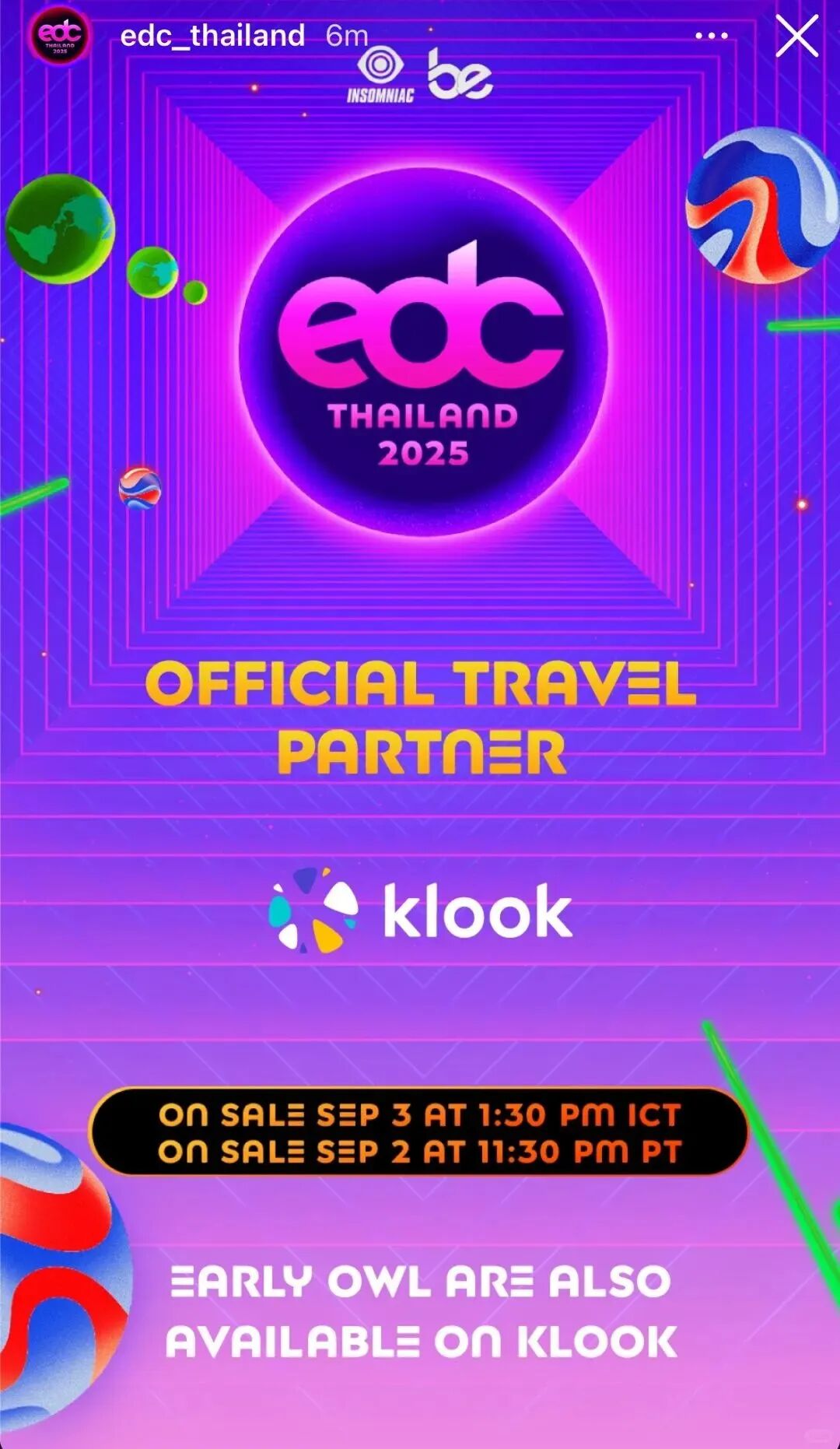 而第三波EDC Thailand门票,“客路旅行”Klook一度让电子音乐资讯作者怀疑是不是平台出现了Bug,通常,票务平台的售价是统一的,官方到手的金额不会“因地制宜”,但Klook这波优惠券使用,似乎超出了Klook泰国正常的活动范围,实在让人联想,Klook怕不是要自己填上票价的“空缺”!!??在“可能的Bug”修复前,作者与同行Ravers先抢一波为敬。