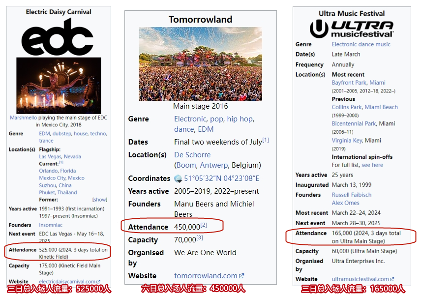 值得强调的是,EDC的票务并非以传统的早鸟票、预售票、普通票(原价票、全价票)的方式发售,作为目前全世界入场人流量第一的「电音节」,EDC有自己的逻辑:未来鹰GA、早鹰GA、智慧鹰GA,分别代表第一阶段门票、第二阶段门票和第三阶段门票。