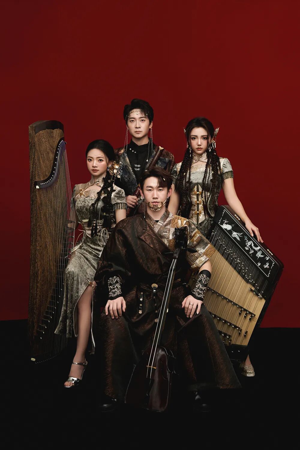在本次Live House巡演的另一端,还有灿然文化精挑细选下,最适合完成融合使命的先锋民族乐团——宫羽令(ECHO LINK),与Vicetone现场“合体”。图片来自Project V Tour 图片版权属于原主宫羽令(ECHOLINK)是由扬琴艺术家林小尤、电子音乐艺术家颜沐宸、项目制作人祖茜茜,发起的实验性东方赛博式国乐艺术企划。深耕中国传统文化,打造“东方赛博”的新兴中式美学。参与的艺术家均由“黑殿艺术”厂牌进行筛选并邀请,是当下国内最优秀、气质与技术兼备的民族器乐传承者,此次参与《Project V》的六名成员,均是有着丰富表演经历和荣获各大专业级赛事大奖的优秀演奏家,囊括了,扬琴、尺八/笛箫、古筝、马头琴、小提琴。