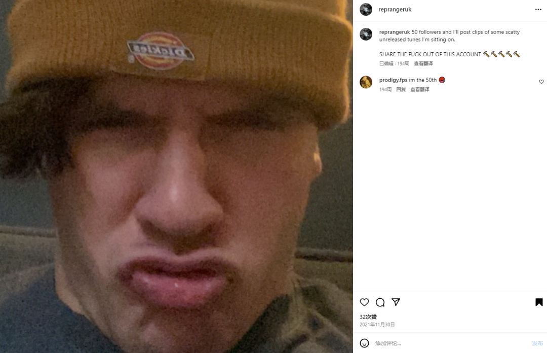 谷歌都不知道的真正冷知识,但电子音乐资讯®知道。国内和国外都只有万分之一的Nimda粉丝记得“它”,你要不要成为第一批拾荒者?但你需要先认识一下Nimda噢。Tearout (Dubstep)的创始人之一、被称作“Start Tearout”的并驾齐驱人物:跟Marauda平起平坐,让Svdden Death拍手叫好。“Start Tearout Dubstep”争议性话题中,讨论度与Marauda、Svdden Death任意两人之间均为五五开的。Tearout Dubstep的三大完善者、完整建设和定义者的Instagram点赞都是匹敌DJ Mag百大前二十的级别。来自英国,目前生活在英国,很快将更新版本,变成生活在美国(九月底或者十月初或者十月后)。Nimda凭借其Heavy且Dark的的Tearout Dubstep,从英国本土的小型俱乐部活跃,一路莽到更大电音节;将专场秀从伦敦一路展示到巴黎、澳洲和整个南半球。毫无放缓迹象,在Tearout圈的开创地位仅次于Marauda的“碾跶”Nimda已成为不可小觑的强大存在。Tearout Dubstep三大创始人之一“碾跶”Nimda的DNB Alias2021年11月30日,“碾跶”Nimda为他的DNB“小号”Rep Ranger发了第一条动态,“粉丝达到50个,我就会发布那些未发行作品的片段。赶紧疯狂分享我的新账号”。后面的大量动态可想而知了,就是Nimda以Rep Ranger这个名字制作但还未发布的那些Drum & Bass。当年Nimda把Rep Ranger这个项目的独家唱片约签给了英国非著名的英系DNB厂牌BRUISED RECORDS,所以他通过BRUISED RECORDS发行了一些作品、展出了大量未发行的DNB Tracks的片段,另外,也跟BRUISED RECORDS参加了一些Takeover Club的演出。我们不确定是因为英国人不够喜欢Nimda“小号”,准确地来说是他的DNB Alias Rep Ranger的作品,还是跟错了厂牌,签署了独家唱片约的BRUISED RECORDS实属带不动他,所以这些舞曲作品和DJ演出都没有获得太大的商业成功,Rep Ranger这个小号逐渐地就不再活跃了。图片来自IG截图(别说这是中国最冷的冷知识这甚至是世界爆冷) 图片版权属于原主2025年8月29日 星期五 22:00~Late Night