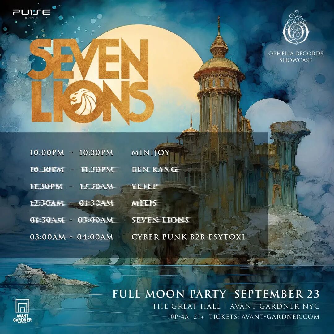 整体而言,Full Moon Party的北美受欢迎程度,话题的热度,讨论度,得到的媒体支持和ZF、美国“官媒”支持,可能要比(520) I Love U Day更高。至少在作者的视角所闻是如此。图片来自1Pulse Events Presents Full Moon Party USA 图片版权属于原主Full Moon Party,满月派对,是一场基于亚洲的中秋节主题而展开的电子音乐、舞曲音乐派对。起初,Full Moon Party这一名字受泰国帕岸岛的满月派对(Full Moon Party)启发,音乐流派集成了Melodic Dubstep、Melodic Bass、美国人认同的新说法“K-Pop EDM”和House Music、Techno,并以传统中秋之月主题装饰加装搭建/布场元素相映成趣。图片来自1Pulse Events Presents Full Moon Party USA 图片版权属于原主具体地来说,1Pulse Events呈献的Full Moon Party的加装搭建和布场可有大有讲究。当日舞台和现场的加装搭建工作,包括满月形状的吊顶钢架搭建灯具、长方形的舞台后置灯架钢架搭建、DJ台的满月图形PVC前板加装、各类主题霓虹标语的加装和镭射灯加装、大量的星星月亮定制吊饰等,就美区呈现而言,原汁原味的加装搭建和布场非常走心。系原有舞台加装。图片来自1Pulse Events Presents Full Moon Party USA 图片版权属于原主美国2023年的Full Moon Party派对项目直接斥“重金”邀请了“七狮”Seven Lions的厂牌/公司/团队Ophelia Records,合作Ophelia Records官方Showcase,并由Ophelia Records官方Showcase派出了四组他们认为最能代表“狮厂”的DJ兼音乐制作人。图片来自1Pulse Events Presents Full Moon Party USA 图片版权属于原主“七狮”Seven Lions,美式Melodic Dubstep的创始人,无论你怎么对Melodic Dubstep溯本求源,最终都会落到Seven Lions身上。作为厂牌的创始人,当然避不开代表Ophelia Records出场,否则就少了一些“法定代表人”、厂牌代表人的领衔意味了。图片来自1Pulse Events Presents Full Moon Party USA 图片版权属于原主“米叔”Mitis、带头将Melodic Dubstep、Melodic Bass和EDM Progressive House(根源见电子音乐资讯的历史消息)融合成新情绪的美籍韩裔DJ/制作人yetep,还有第四个“狮厂”狂人,他们的Labal Manager(即厂牌经理人)——“K-Pop EDM”推广机器DJ Ben Kang。除了四组狮厂派遣艺人外,还有三组Additional Support,篇幅原因不做介绍。图片来自1Pulse Events Presents Full Moon Party USA 图片版权属于原主2025年 Full Moon Party来到中国和韩国10月初,1Pulse Events的Full Moon Party派对品牌将会空降中国和韩国。但考虑到对其进行详细介绍很占篇幅,每篇文章都写一次Full Moon Party中国站和Full Moon Party韩国站并不现实,不可能每一期文章都大占篇幅再说一次。这个确实没办法,可等待后续的专题。