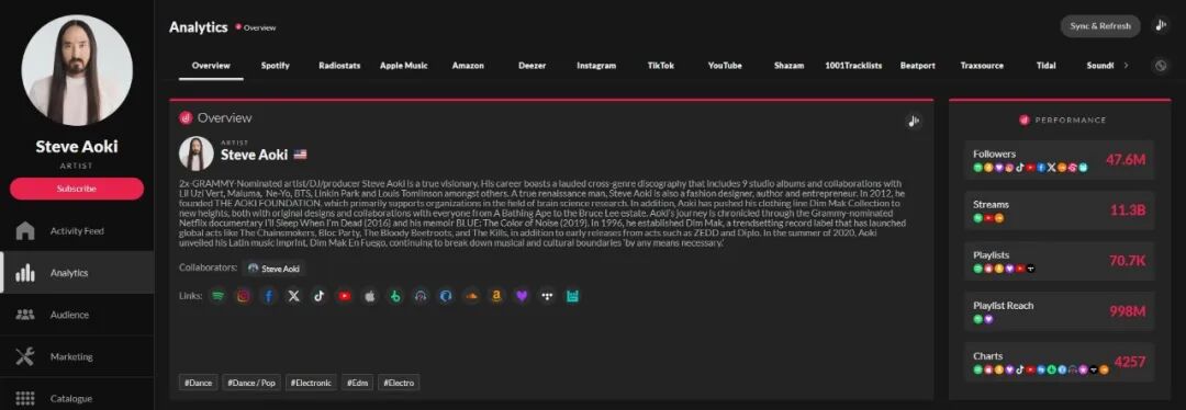 与类似Steve Aoki这样全网全平台数据等于或大于“周杰伦B2B权志龙”的惊人例子合作,就是我们说的第四个“主要背书”的阶段。当然,这也并非空口无凭地想象,或是对EDM OG之一Steve Aoki的盲目托举,2025年10月3日,这样的例子已经成为事实,且是非单一的事实。