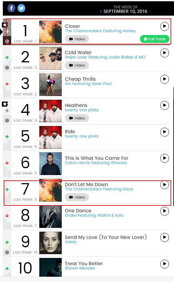 这张专辑里只有一首音乐,就是《Closer》。仅仅在发行三周的时间拿下榜首,第四周仍然屹立不倒。R3hab也在前两天进行了Closer的Remix,除此之外的许多大牌电音制作人&DJ都加入了Remix行列为其助攻,目前排名趋势丝毫没有下降(Remix和原创有什么区别?)。