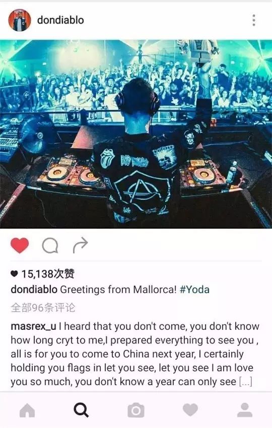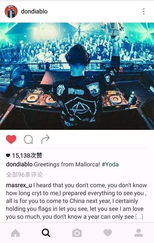 咱们大致翻译一下,一名中国粉丝在instagram上对Don Diablo评论“十号你不来中国了,我代表中国广州Fuck You,因为你不来。我都为你准备好旗子和衣服了,Fuck You”。“Fuck You十号你不来中国”。“我听到你不能来,你不知道我哭了多久。我为了见你什么都准备好了,全是为了你明年来中国。我打算举着旗子让你看到,让你看到我有多爱你,你不知道我等了一年”。