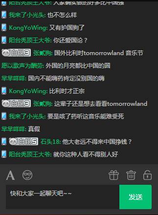 每场电音节直播都能做到有几十万人围观,即使是个人演出一般也能达到几万人。那么我们不可能强求所有人花钱去现场,电音爱好者的数量实在太多,但很多人都是随便听听,了解不深,我们很难去计算核心爱好者的数量。自然而然有一些人只会在家对着电脑/手机看直播。直播没有任何不好,但是总有一些人将弹幕当做智商秀场。