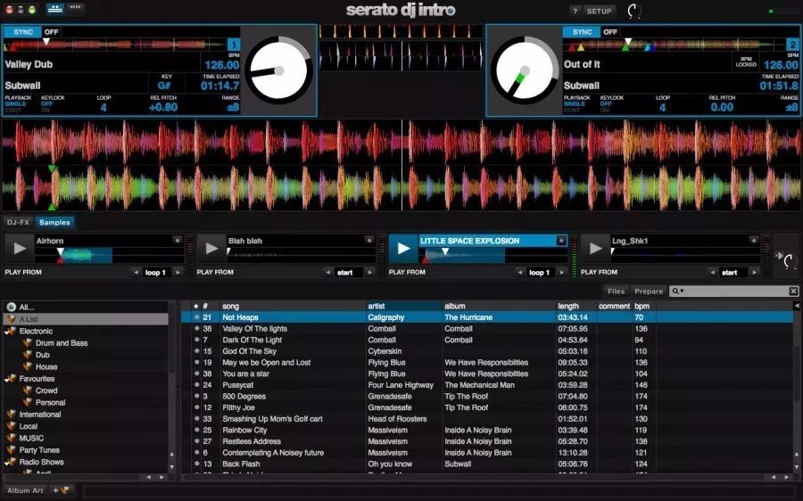 但对比黑胶唱机,这种看不到波形图的CDJ已经是一种进化了。至少你可以看到歌名了,你可以看到艺人名字了,你可以看到时间轴了,总之它带给了你一部分信息。如果是黑胶唱机,将是完全“盲打”,什么信息都看不到的,所以更加考验技术。但在之后,依附于电脑而存在的DJ软件诞生了,它的信息丰富,有彩色波形图,让打碟变得简单很多。