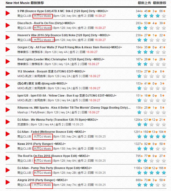 光这名字就已经够好笑了,又“DJ音乐”呢,U盘里的歌名/艺人是否已经被篡改不得而知,但以上情节已经很恶劣。如果没猜错的话,这个网站不仅把电音错误称之为“DJ”,把舞曲错误称之为“DJ舞曲”,存在大量的盗歌情况,而且似乎连网站名字都是抄袭的。别忘了,网站名字也是有版权的,MixDJ和MixingDJ,傻傻分不清。