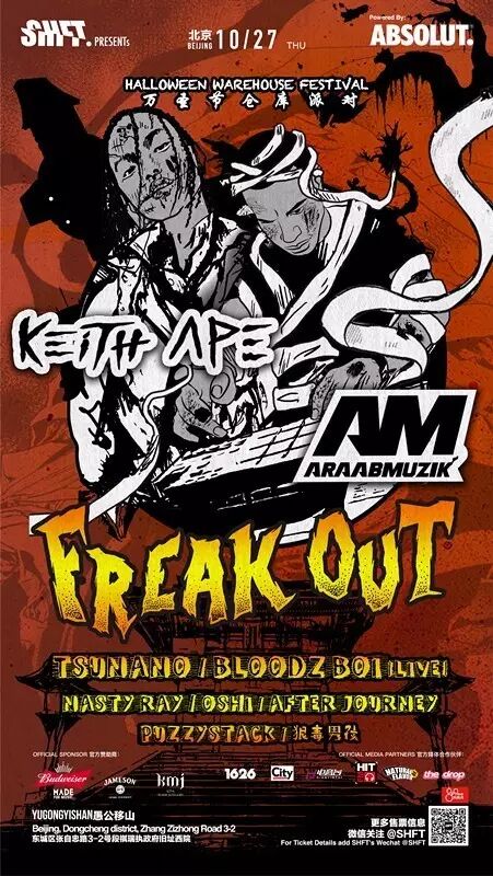 电音加藤鹰Araabmuzik,从1992年诞生的Trap-rap到2010年诞生的EDM Trap,他被记载在史册上,因为他是最早将Trap-rap加入更多电子音乐元素和Build-up/Drop做成所谓的EDM Trap的艺人之一。更是全世界公认的MPC鼓机第一人,是最具有实力的Trap制作人&DJ之一,更在幕后帮非常多知名Rapper负责过Hiphop制作。这一次Freak Out,Keith Ape和Araabmuzik将在三站出现。