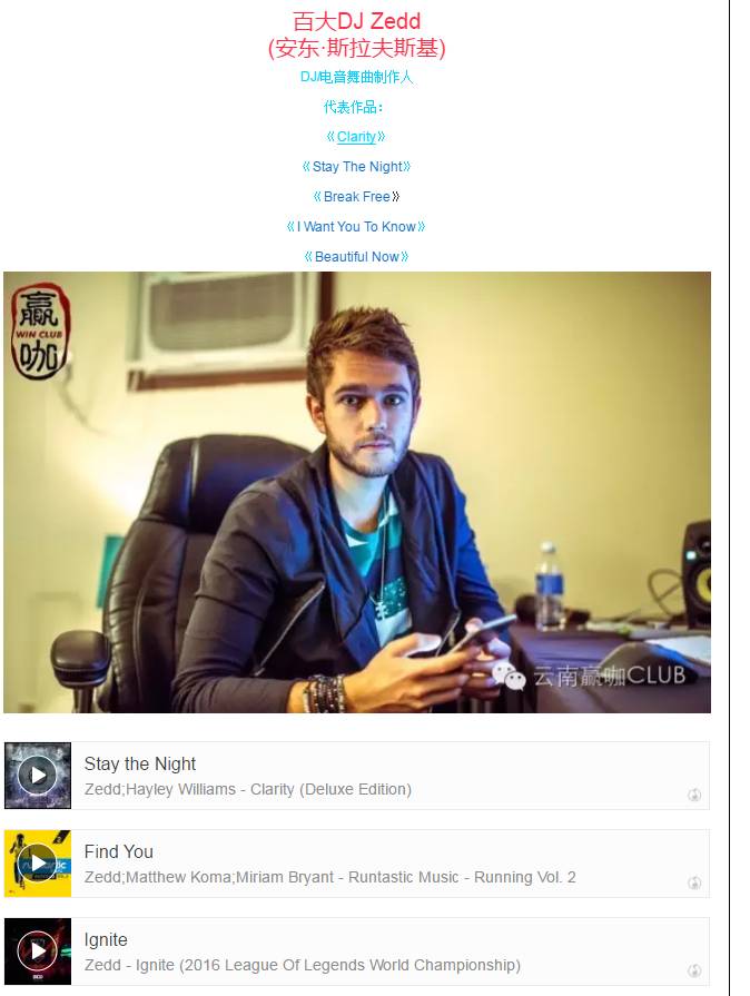 Zedd,一个在我们公众号提到多少次的名字。就在几个月前我们剧透过大量的音乐制作人&DJ将来到中国,也许有十几个人,这其中只剩下Martin Garrix/Zedd还没有来到内地,把港澳台算上,自然已经全齐,但我们还是期待剩下的两位会在今年来到内地。比起某些垃圾微博造谣了一堆要来中国的结果一个都没来还乱咬人,显然我们的消息可靠很多。