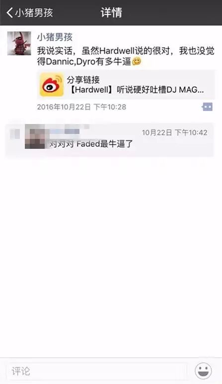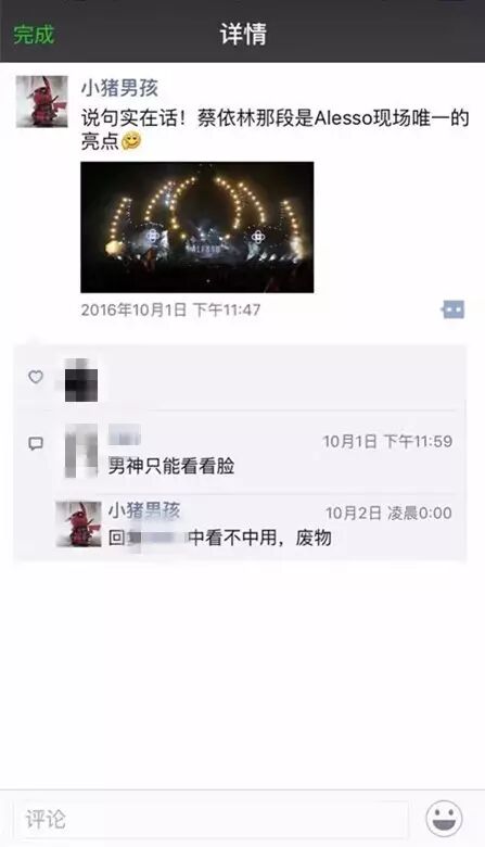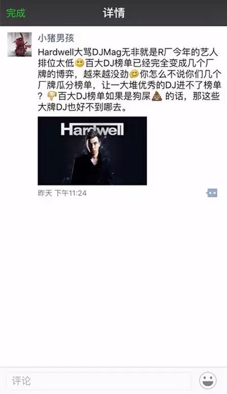 据可靠消息,小猪男孩是时光网的编辑&摄影师,所有的现场摄影都完全是以时光网的名义去干的,各位千万不要误以为这是什么大神。当你看到他的微博的时候,你只需要想到他根本不是什么资深爱好者,懂电音更是不可能,充其量是个拍视频/发直播的,然而拍视频/发直播又要归功于他是时光网的员工,如果你真要感谢他的视频那就去感谢时光网。截图来自他人。