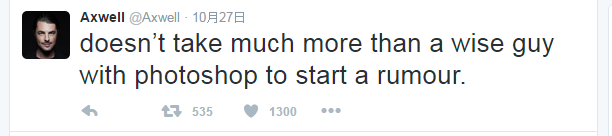 可是不料,所有的大喜都将到此为止。当我前往Axwell的推特翻阅的时候并没有找到这条推文。谣言止于亲眼见证,不仅中国媒体经常不可靠,西方媒体也存在很多无意间传播开的谣言,经常他们也不是造谣者。Axwell已经做出回应,“不需要太相信一个聪明的家伙使用Photoshop散播的谣言”。显然在留言中已经可以看出上百万人上当,上百万人伤心。至于是否重组,西方媒体早已不是第一次散播,还是靠时间证明吧。