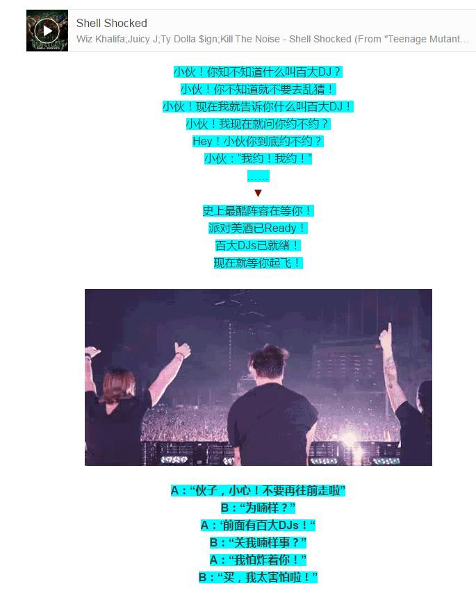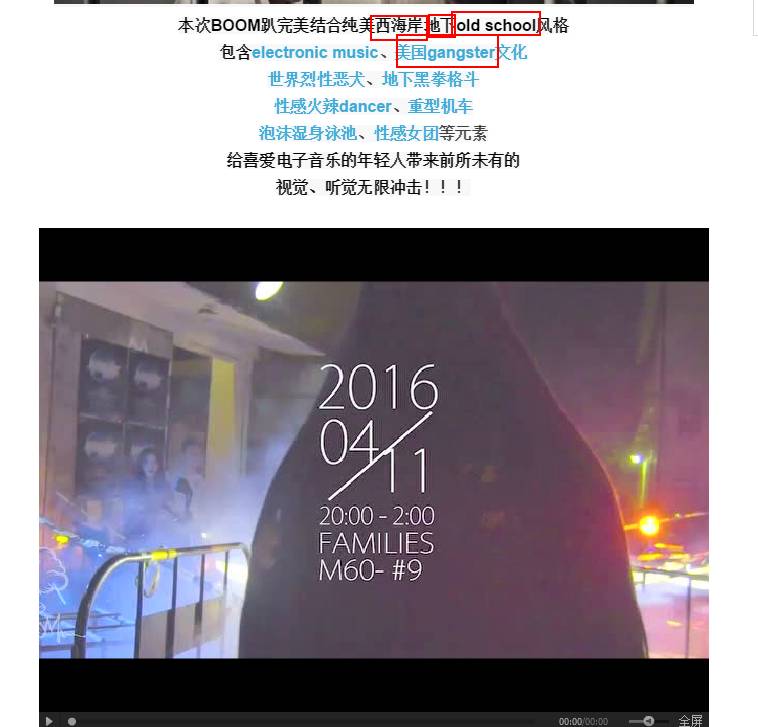 整场派对的音乐风格定位也实在不专业,明明就是一群放House的,竟然能编出“西海岸”“地下”“Old School”“Gangsta”风格,难道这个主办方真的不知道这几个词是什么意思吗?当这是说唱大赛呢?心有多虚?直接说Progressive House/Progressive Trance/Bigroom/Dutch House/Electro House不好吗?哦也是,要是他们有这么诚实和懂事,就不会找几个驻场DJ冒充大牌了。