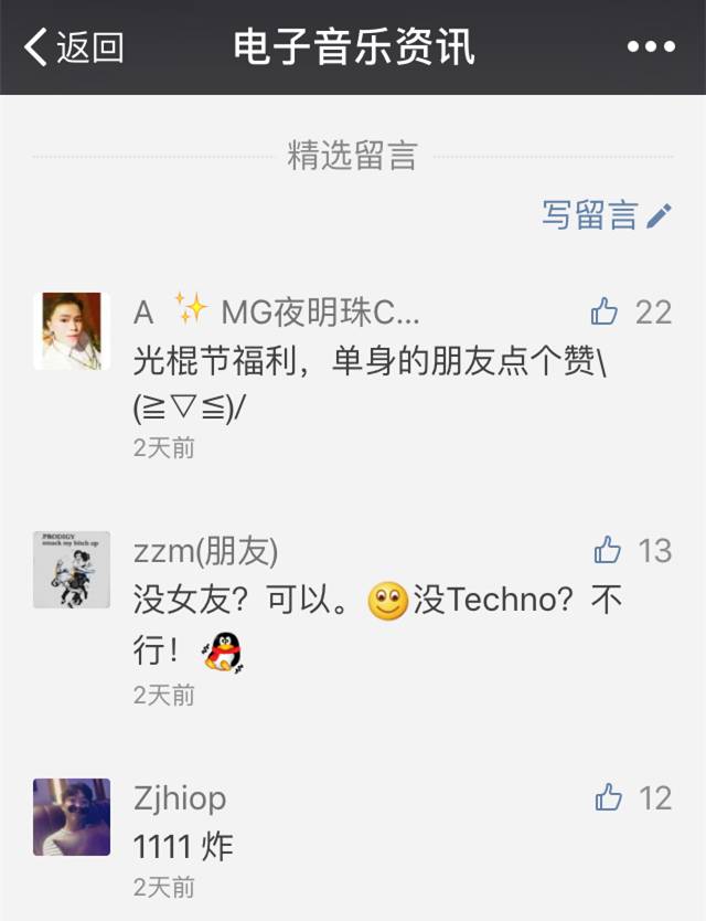 第一位获得两张门票,第二位也获得两张门票,第三位获得一张门票,这是截止到今天18:00的结果。私聊我们公众号,我们将发给你优惠码,直接在购票网站上使用优惠码即可直接成功兑换门票。赶紧在光棍节那天干点真正像双十一的事,说不定有大舞池和优秀制作人的伴同,你还可以顺便脱光。